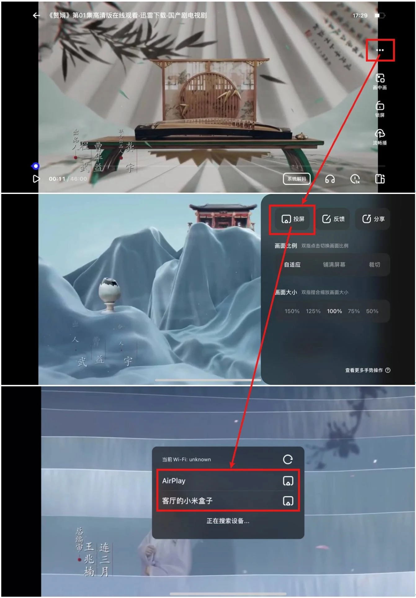 打开夸克浏览器->打开鼎诚28短剧->播放视频->选择·····右上角 … ->投屏->等待搜寻出智能电视/电视盒子->选中,即可投屏。